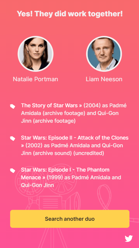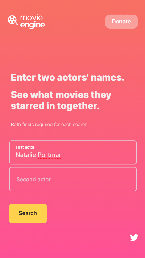 My client's goal for Move Engine was a simple web application to determine if two actors have worked together in a movie or TV show. The client desired a fast and device-responsive site with minimal costs.